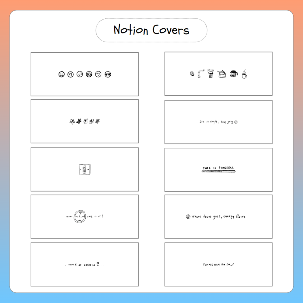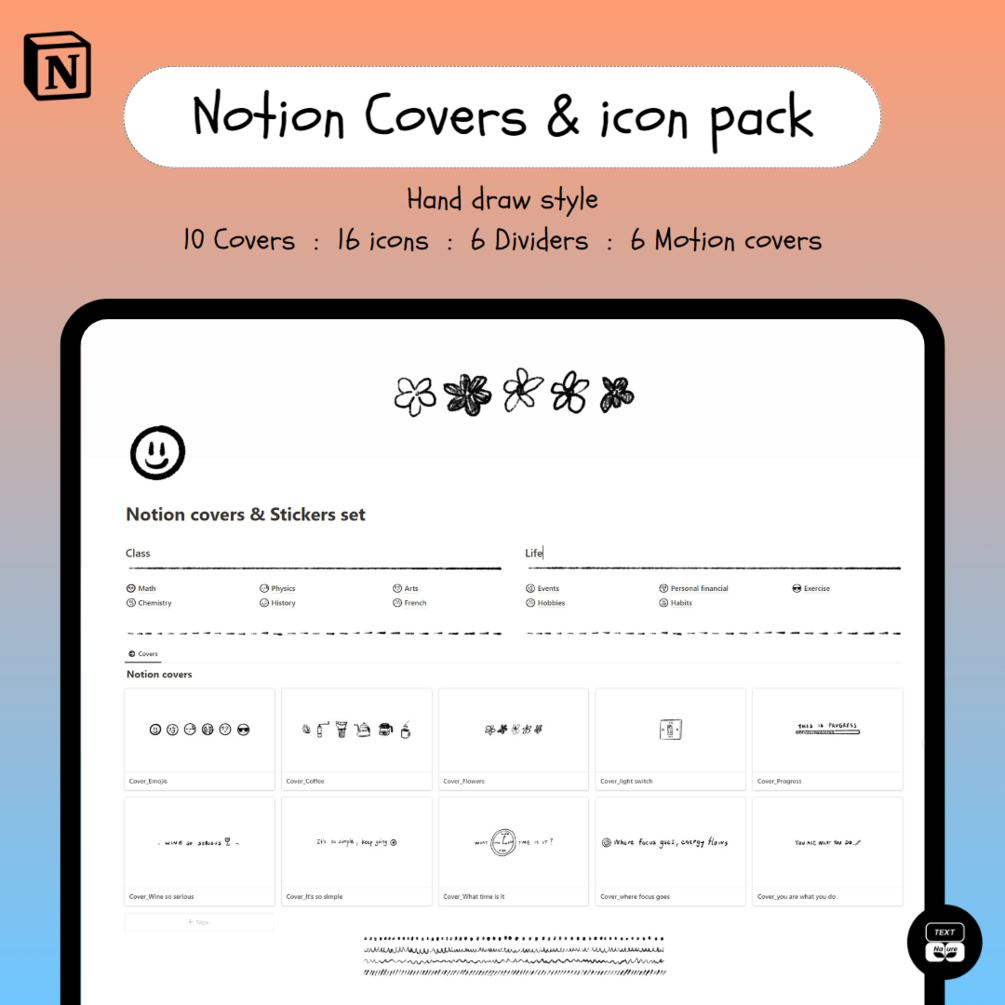Hand draw Notion covers, Motion covers, Icon and dividers set