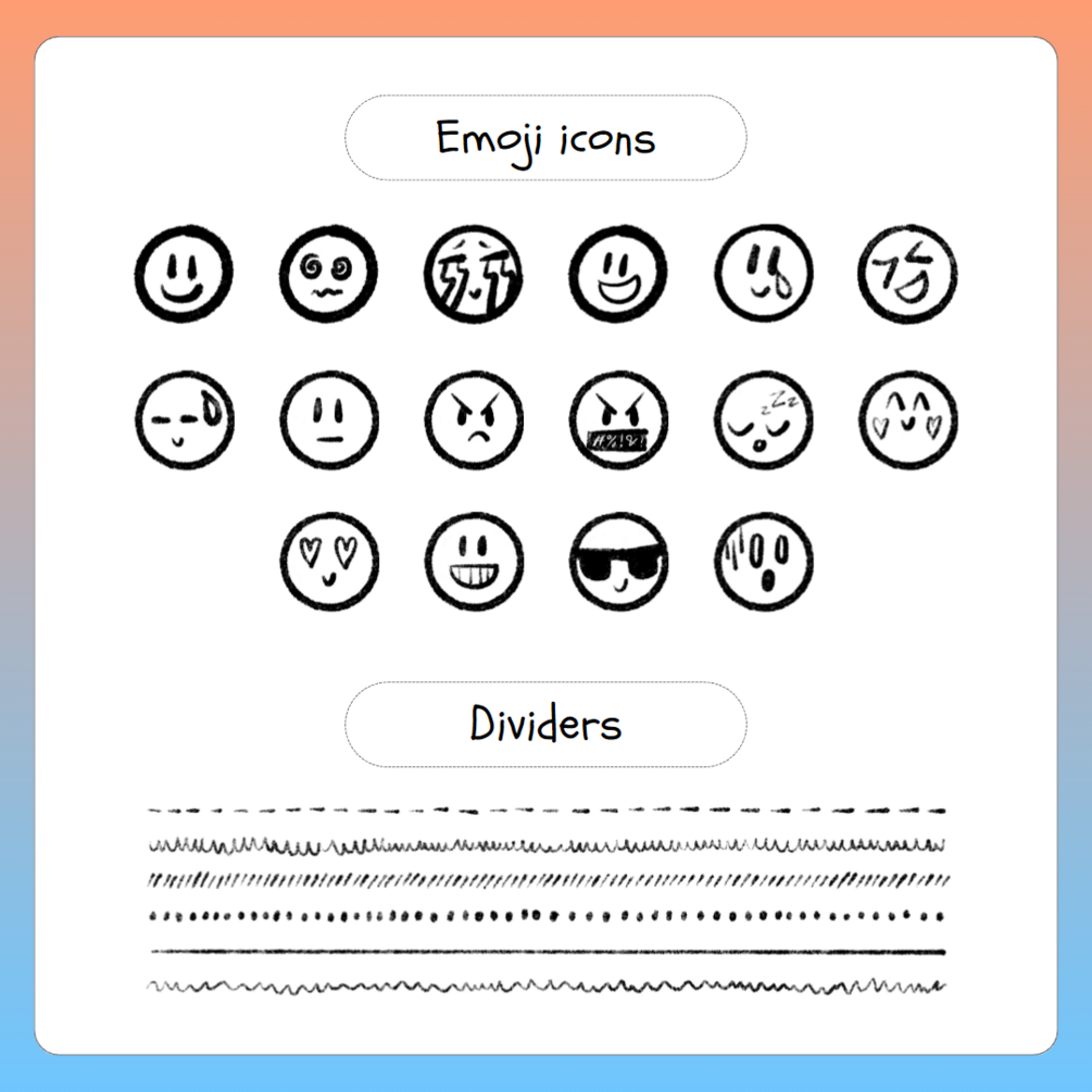 Hand draw Cover Notion, Icons and dividers pack.